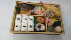 🐟 近々お目見え!新作弁当 🐟 2025年8月11日 スタッフブログ メインはじっくり味を染み込ませたやわらか煮鯖。 口に入れればほろりとほどけ、甘辛の煮汁がじんわり広がります。 サクサク天ぷら、彩り豊かな煮物、季節の酢の物、巻きずし、いなり寿司…そして最後はちょっと嬉しい甘味まで。 一箱で「和のごちそう」を余すことなく堪能できる御膳です。 お披露目はもうすぐ―― 花むらからの新しい味わい、どうぞお楽しみに…✨
