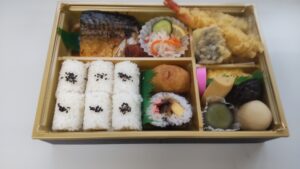 ✨新登場✨ 紀州煮鯖御膳 2000円(税込) 2025年8月18日 スタッフブログ 脂がのった鯖をじっくり煮上げ、上品な旨みを引き出しました。 海老の天麩羅、季節の煮物、ふんわりだし巻き卵、彩り豊かな酢の物…。 俵おにぎり、巻き寿司、いなり寿司も添えた、豪華な一折です。 ご家族の集まりや大切なお客様へのおもてなしにふさわしい、花むら自慢の御膳。 明日より 予約弁当コーナー にて受付を開始いたします。