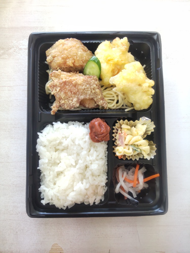 🌸新商品ご紹介:唐天弁当(からてんべんとう)🌸 2025年11月18日 スタッフブログ 11月20日より、花むらに新しいお弁当が仲間入りします。 唐揚げととり天を同時に楽しめる『唐天弁当』。 カリッとした唐揚げ、ふんわり軽いとり天。 どちらも食べたい日に、ちょうどいい一折です。 気取らないけれど、しっかり満足できるお弁当です。 ぜひお試しください。