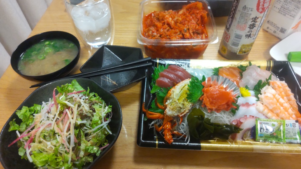 そして家に帰り、サラダと味噌汁、いつものキムチ、
