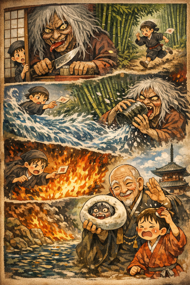 そこから始まるのが、三枚のお札を使った大脱走劇。