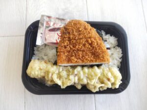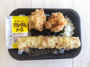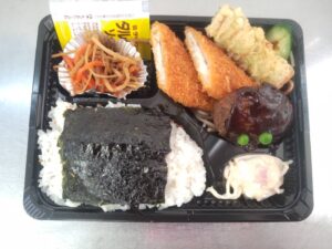 「海苔ご飯の上におかずが乗った丼型弁当」