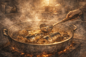 毎日、同じ味を守るために火を見続ける。